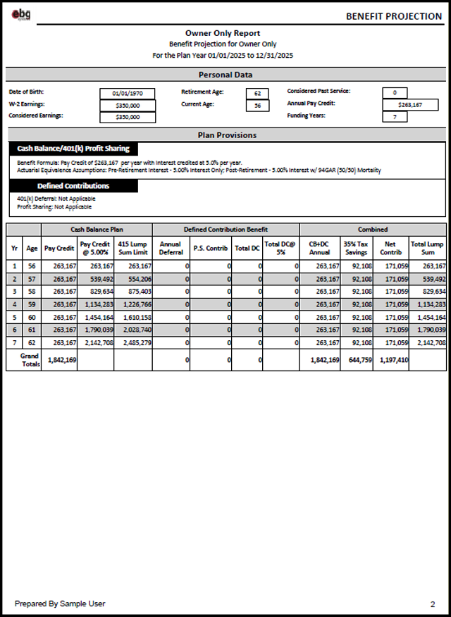 See an example of an Owner Only Report (excluded 401k Deferrals and Profit Sharing Contribution)